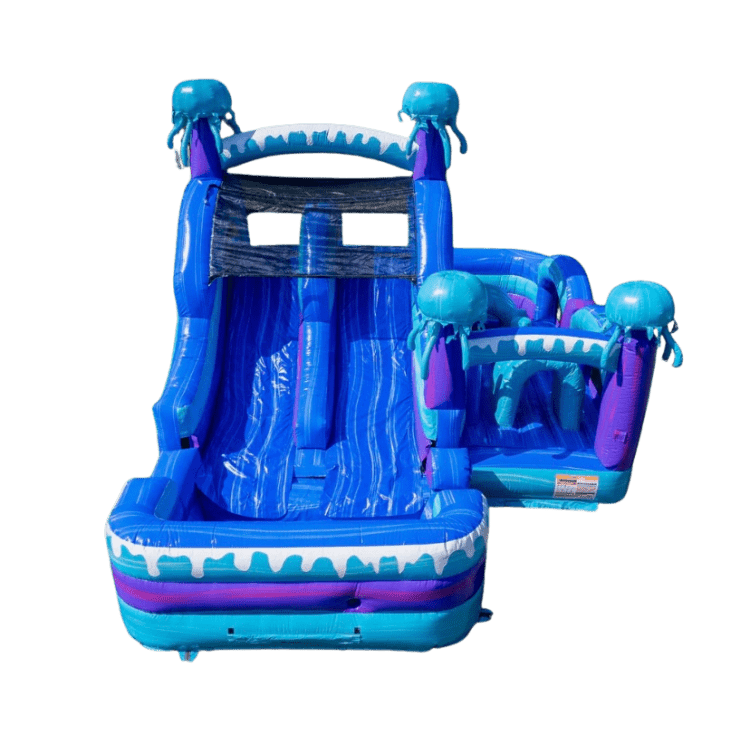 Make a splash at your next party with our exciting Electric-themed Obstacle Course, perfect for families in Riverside County! Featuring bright blue colors, fun jellyfish accents, and a refreshing splash pool, this inflatable brings a cool, under-the-sea adventure right to your backyard. Kids can jump, climb, and race down the slide into the water for hours of nonstop fun, making it a hit for birthdays, summer parties, and special events. Use it wet for a refreshing escape on hot days or dry for year-round entertainment. Clean, reliable, and professionally set up, this bounce house creates unforgettable memories while keeping kids active and engaged. Book today and turn your event into a fun-filled ocean adventure everyone will love!
